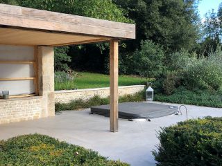 Spa encastrée dans une terrasse en dalle céramique