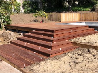 Terrasse et emmarchement en bois exotique